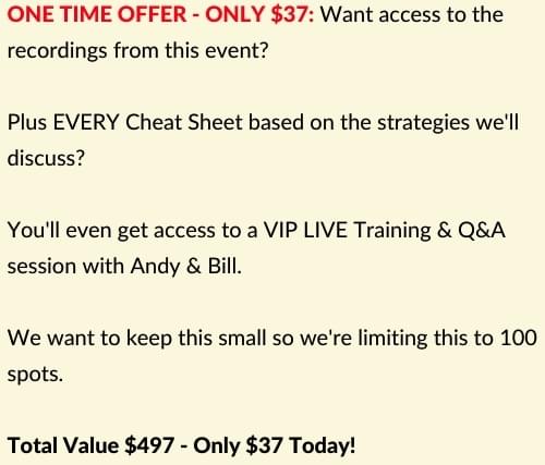 Nothing on this page, any of our websites, or any of our content or curriculum is a promise or guarantee of results or future earnings, and we do not offer any legal, medical, tax or other professional advice. Any financial numbers referenced here, or on any of our sites, are illustrative of concepts only and should not be considered average earnings, exact earnings, or promises for actual or future performance. Use caution and always consult your accountant, lawyer or professional advisor before acting on this or any information related to a lifestyle change or your business or finances. You alone are responsible and accountable for your decisions, actions and results in life, and by your registration here you agree not to attempt to hold us liable for your decisions, actions or results, at any time, under any circumstance.